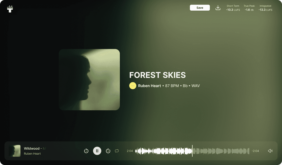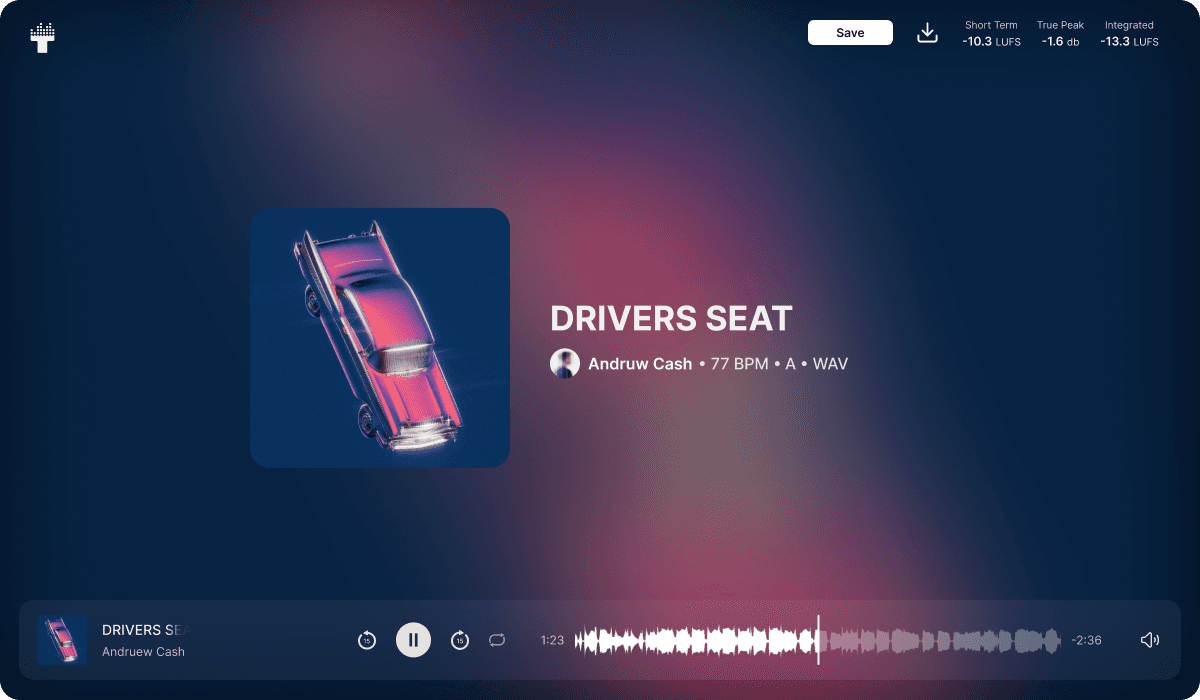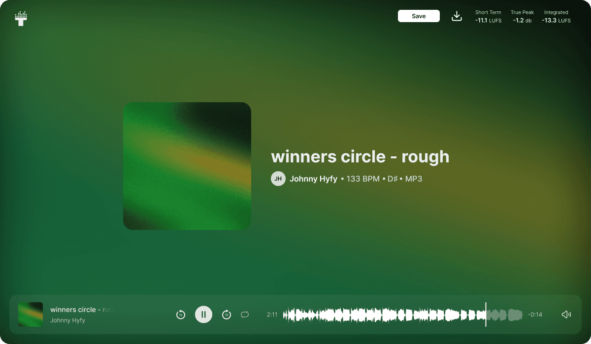 LUFS and True Peak metering. Instant readings. No guesswork.