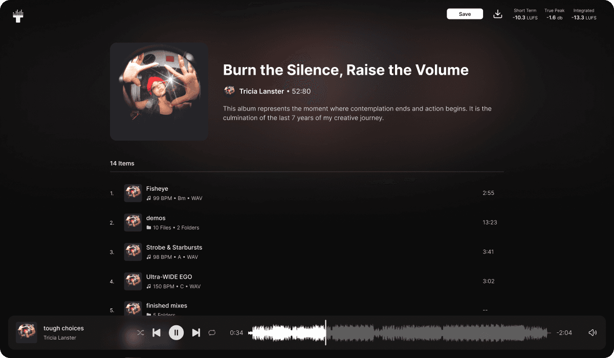 Traklist is the artist-led home for your music to live and evolve before the world hears it.