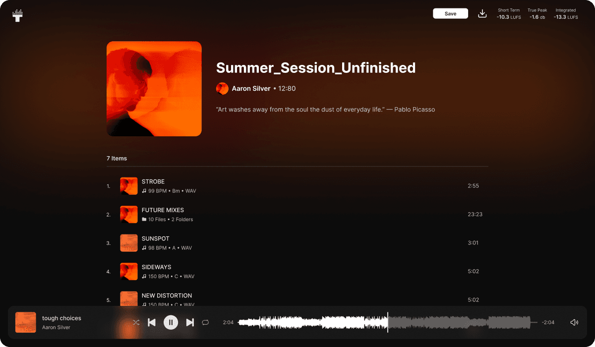 Traklist works like a studio, not a filing cabinet. Your home screen keeps recent work front and center. Fully customizable folders, powerful search, and music-focused filters help you find anything instantly. It moves at the speed of your ideas.